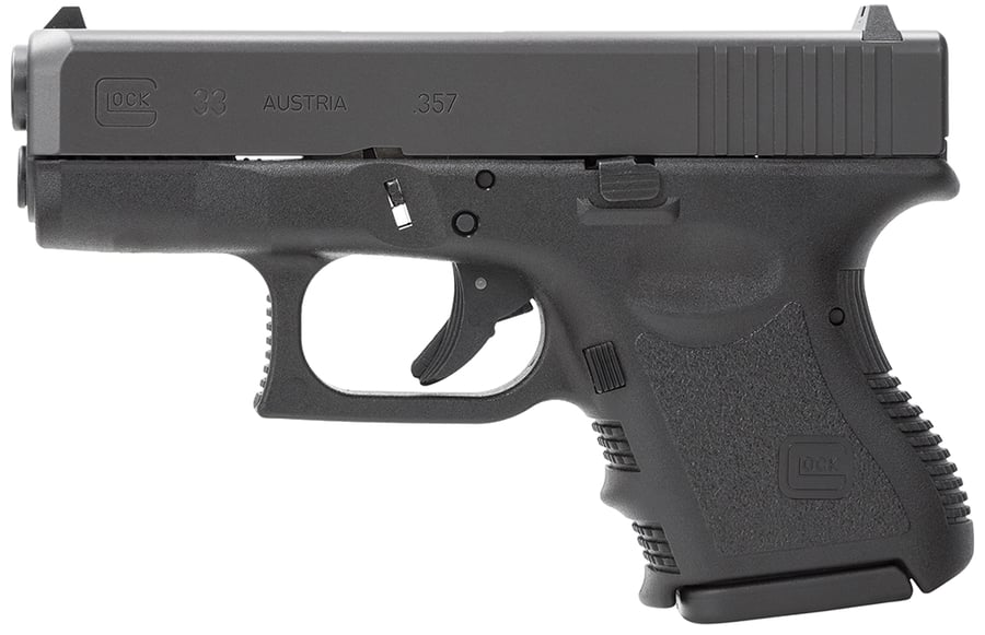 This Glock G33 Gen 3 is a semi-automatic handgun chambered in 357 Sig. Well-suited for concealed carry, this polymer-framed pistol offers high muzzle velocity and energy rolled into an easy-to-handle compact package. The textured polymer grips, finger grooves, lined front and backstraps, and indents for the middle and ring fingers all contribute to a comfortable and secure grasp through every shot fired.