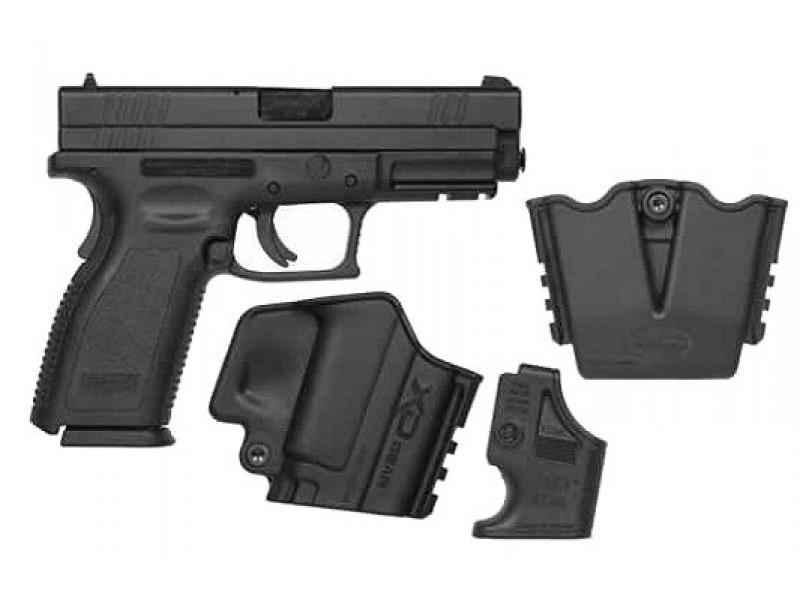 The Springfield Armory XDM-9 is a double-action semi-automatic pistol chambered in 9mm with a 19-plus-1 round capacity. A 4.5-inch barrel is adorned with Trijicon night sights while users can attach their choice of accessories to an integral picatinny rail. Interchangeable backstraps allow shooters to fit this gun to their own hands. This package comes with two 19-round magazines.