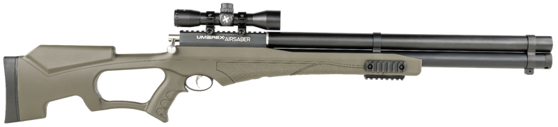 The Umarex Air Saber Combo delivers a high performance air gun rifle with a durable 4x32mm scope. The rifle fires Umarex Straight Flight Technology arrows and 3 are included and features a two-stage trigger and a thumbhole stock. Get the best price online from Machine Guns Kings today!