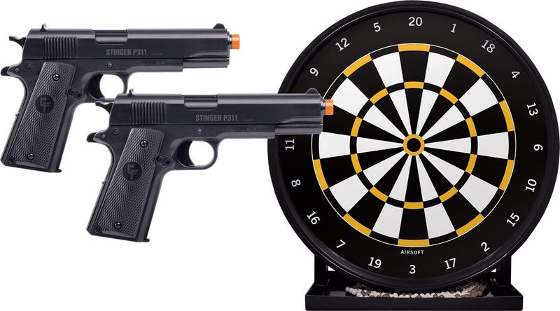 The Crosman Stinger Challenge Kit provides two airgun pistols and a 12 inch target for practice and plinking. Included is 500 rounds of 6mm air ammunition. Get the best price online from Machine Guns Kings today!