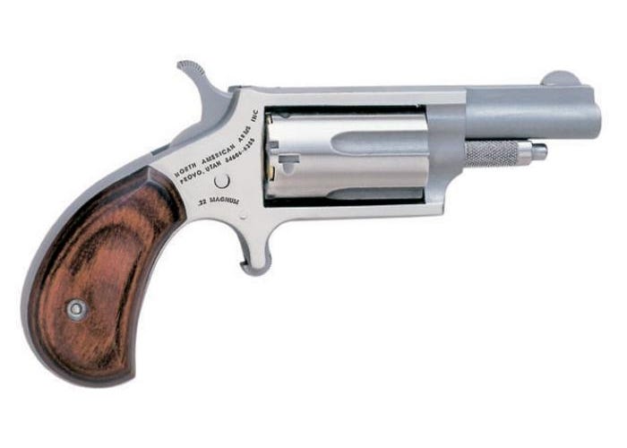 North American Arms Mini Revolver, Single Action, 22WMR, 1.625″ Barrel, Steel Frame, Stainless Finish, Wood Grips, Fixed Sights, 5Rd NAA-22M