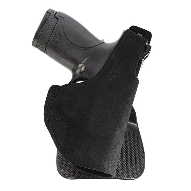 The Galco Paddle Lite is a leather paddle holster with polymer paddle belt attachment for easy on-off. It features a center cut steerhide holster body with a thumb break for retention, a high ride design with forward cant and fits belts up to 1.75-inches in width.