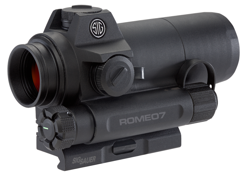 The SiG Sauer Romeo7 delivers a full-sized red dot sight. It features a 30mm objective, an illuminated 2 MOA red dot reticle, and a long-lasting battery life. Get the best price online from Machine Guns Kings today!